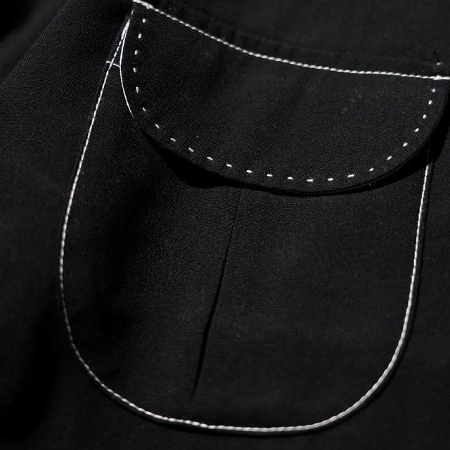 フロントのフラップ・プリーツポケットやサイドリブ等当時のディテールを再現しつつシルエットを変更。