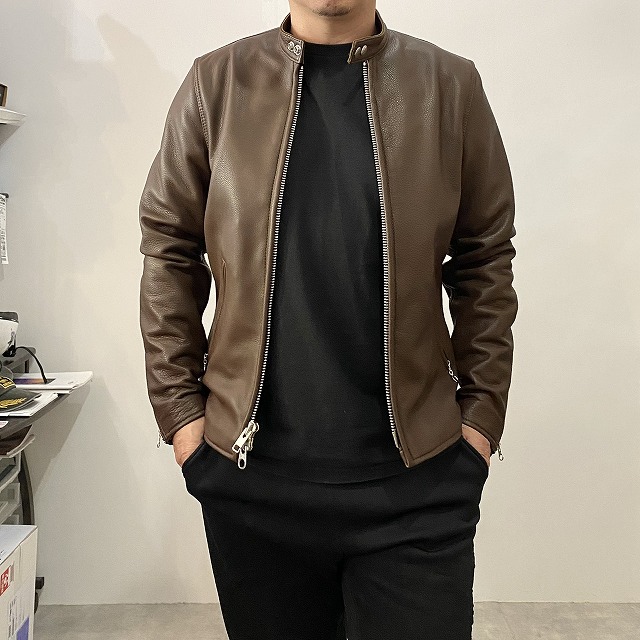 Vanson Leathers シングルライダースジャケットのシルエットをタイトに仕上げ、トップクオリティーのグレインレザーを使用。