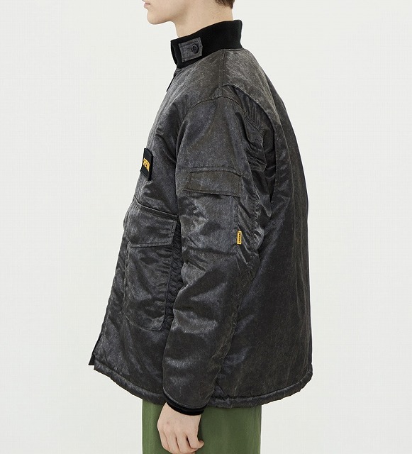 厚手のナイロンツイル生地を使用し、エイジング加工を施しています。オリジナルのディテールを継承しつつ、現代的なシルエットに再構築。